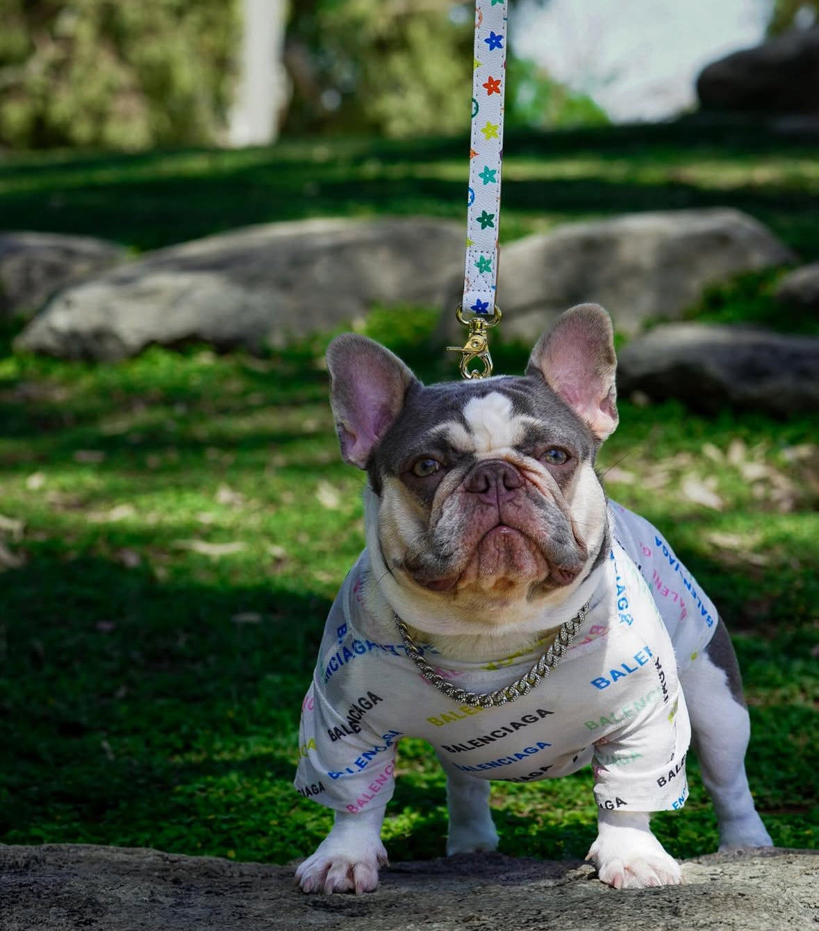 Elevate your pet's wardrobe with our exclusive Designer Pet Apparel. This collection features two chic pet shirts: one in black with a vibrant, multi-color designer print, and the other in white adorned with a similarly elegant pattern. Each shirt is crafted for ultimate comfort and style, ensuring your furry friend looks and feels their best. Available in sizes small through large, these high-end shirts are perfect for any occasion, from casual walks to special events.